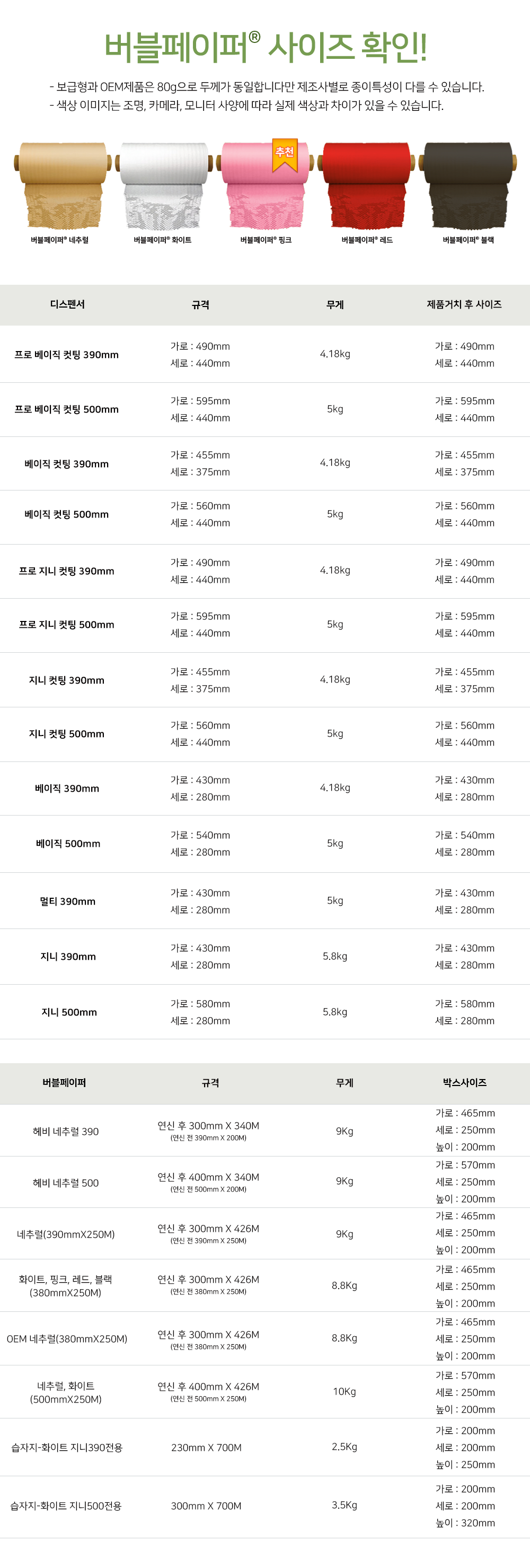 디스펜서, 버블페이퍼, 습자지는 옵션에서 각각 선택 바랍니다!